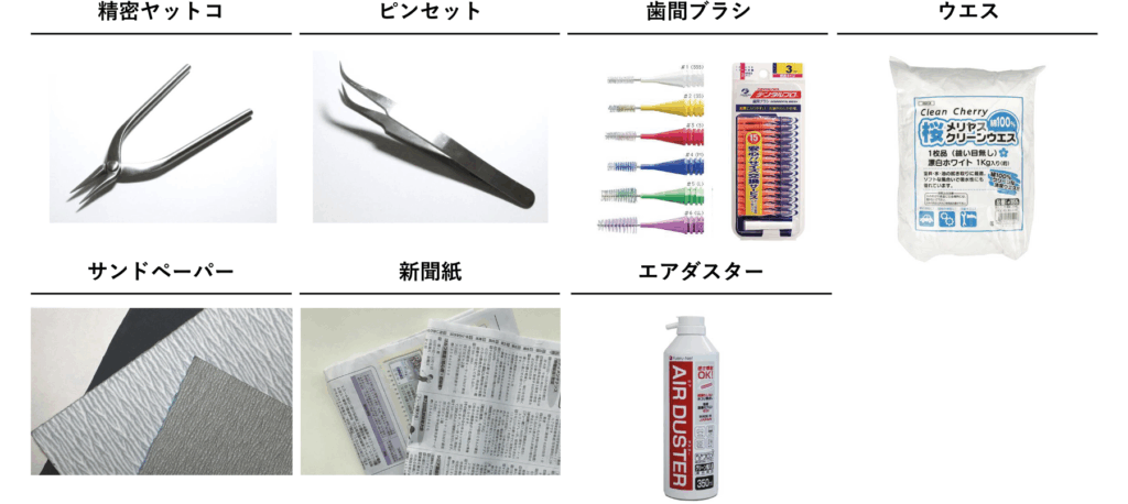 3Dプリンタの積載面が凸凹しているのでサンドペーパーなどを使用して綺麗にする。(シリコンが入り込んでしまうから)ウエスで磨く。歯ブラシや歯間ブラシなどでやすりクズを除去する。エアダストで細部まで飛ばす。