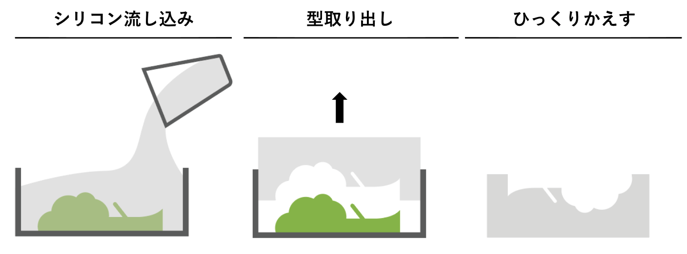 ひっくり返すからぁ、モールドは反転したものをつくらないといけない。レリーフは原型。頭こんがらがる。