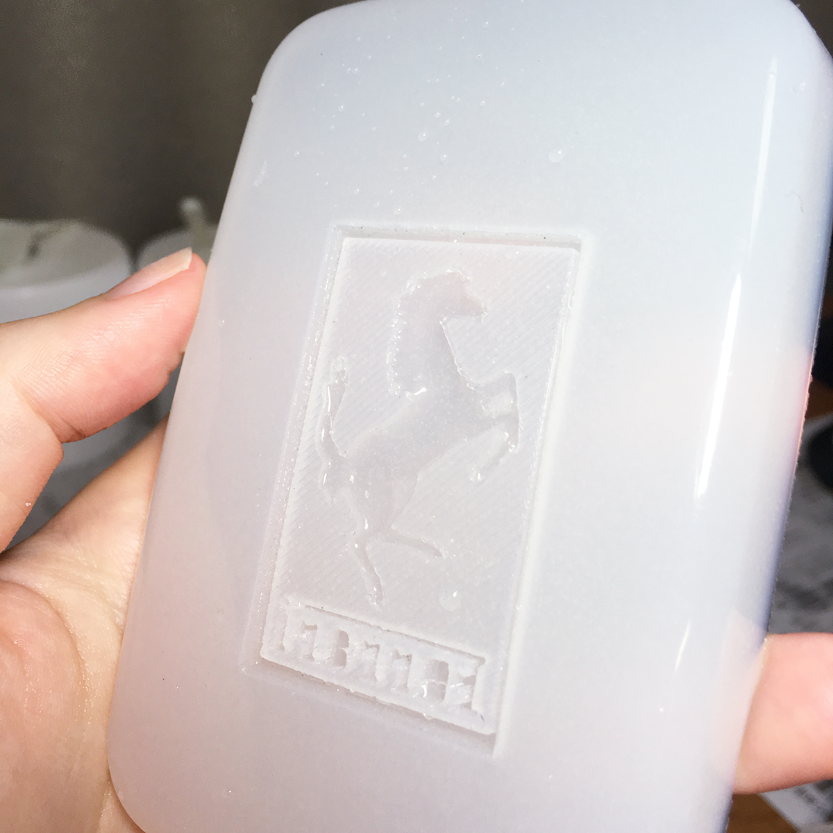 壊れないように注意するのに中々取り出せなくてワー!ってなる。(不要部分のカット:基本発生しない)馬の背面は平面、貼り付けている型の部分は3Dプリンタの積載面で凸凹している。よって、ここににシリコンが流れ込んでしまうため、薄い幕ができてしまう。これを、馬型に添ってカッターで切り込み入れてそーっと剥く。