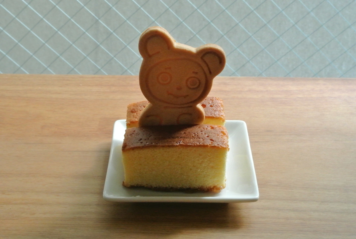 で、カステラとカンカンベアクッキーが出来上がってどう合体させて見せようか。