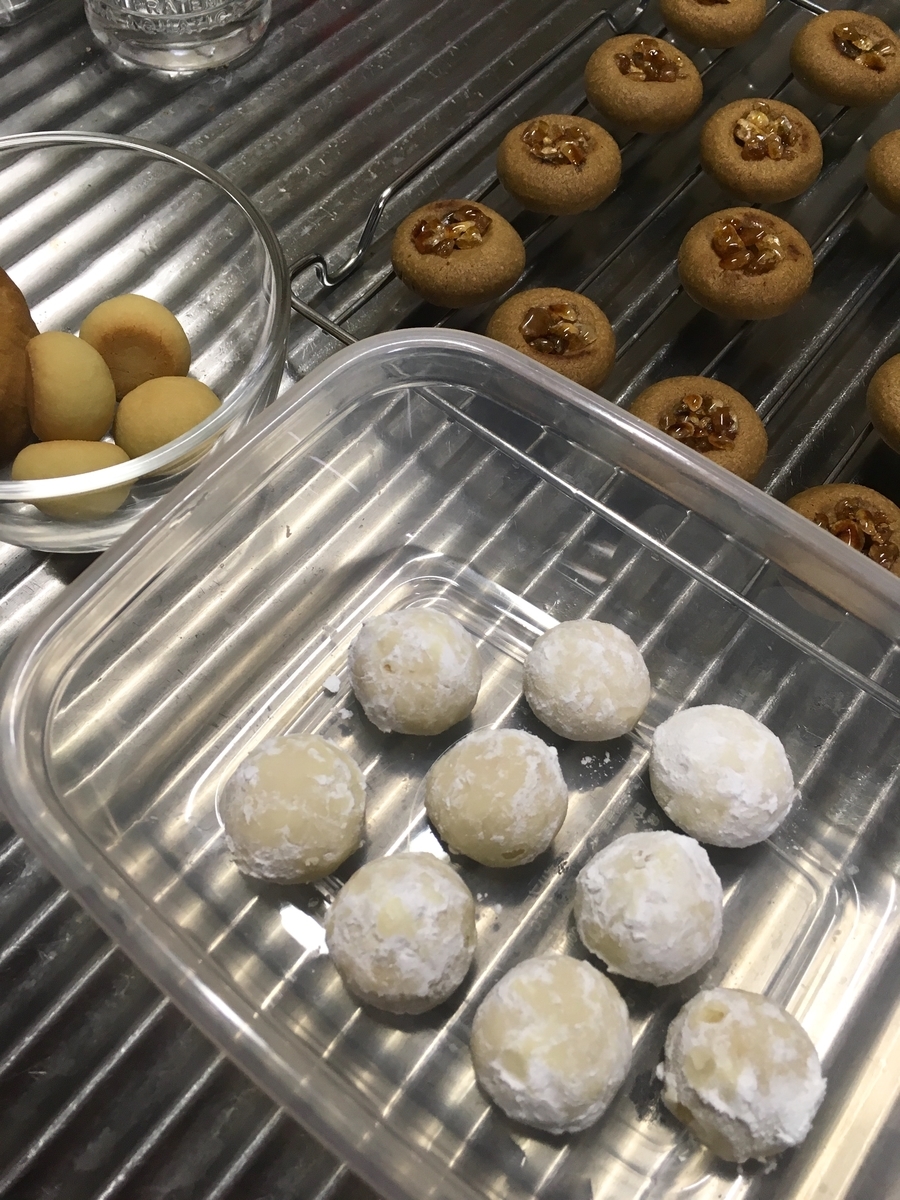 8gづつに分けて、丸めて、真ん中潰して、コーヒーシュガーのせて、オーブンで焼く。