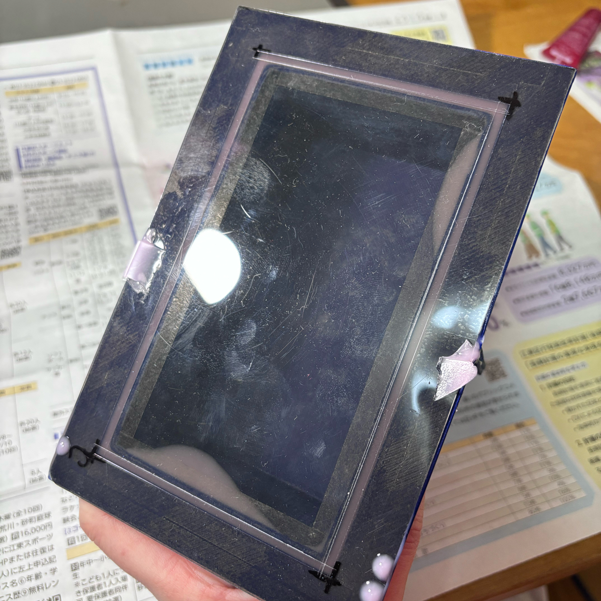 100均で購入した薄めの下敷きをカットして両面テープで貼り付ける。