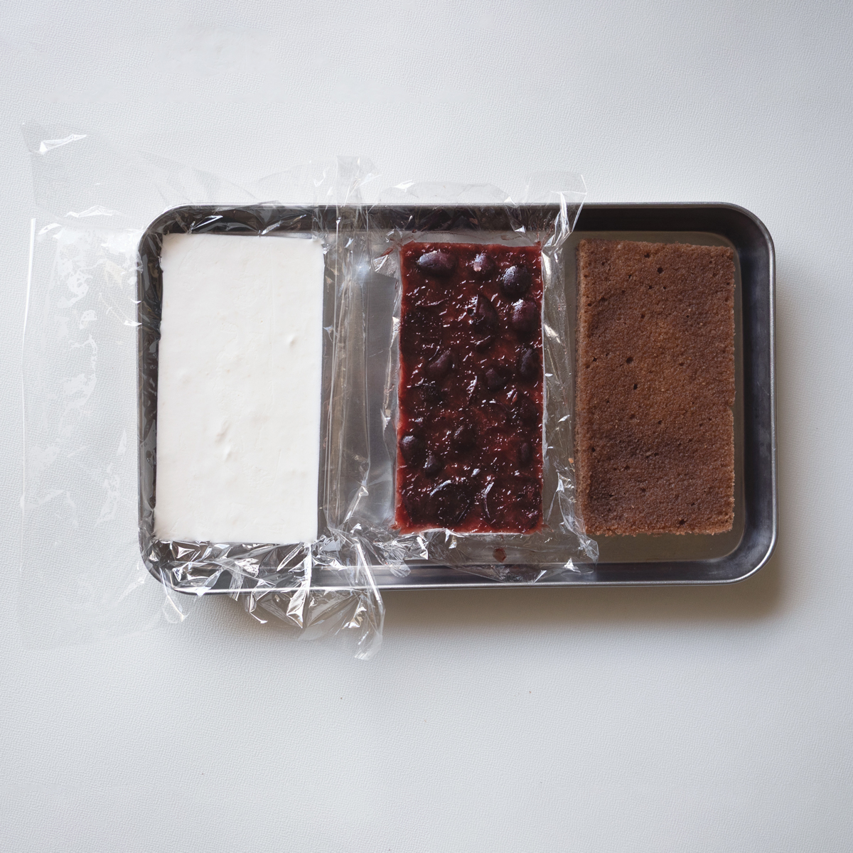 生クリームを挟む。且つ、そこにココナッツファインを加える。
