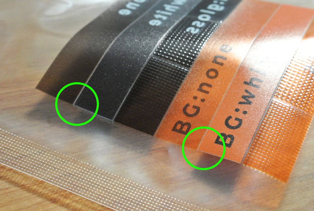 白/透明/CMYKは噴射口が違うので例えばこの3つ全て使うなら3回プリントされてできあがる。