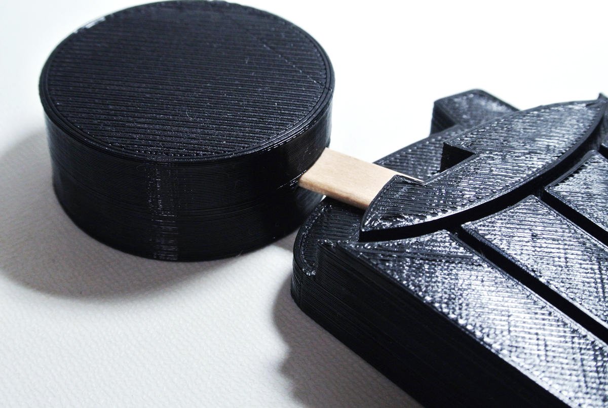 柄杓部分は本当は棒に沿って四角の方がフィラメントと出力時間の節約になるけど、シリコン型にした時に丸にしておくと、ちょうど柄杓を逆さにしたようなスタイルになりそうだったので、どうしても丸にしたかった。